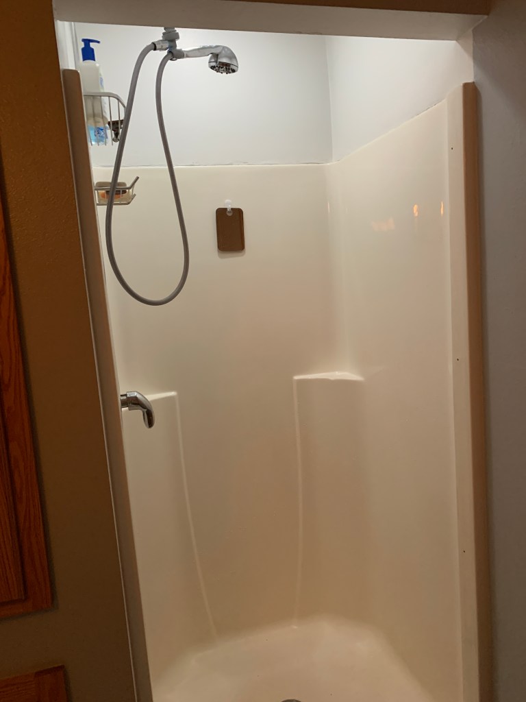 In June I decided that I did not like having a glass shower door anymore and decided to rip the door off. This project required a lot of patience to scrape all of the caulking off, fill the holes with a sealant, and then scrub the shower clean. It was more work than I intended to get myself into but I am very happy I did it.